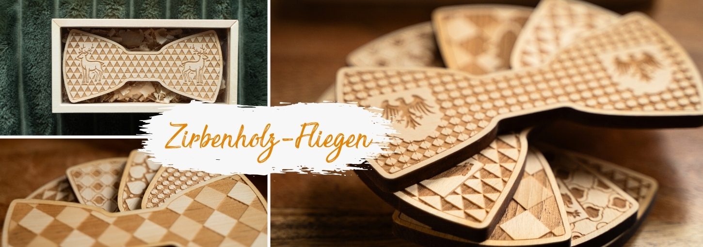 In dieser Kategorie findest du exklusive Holzfliegen mit filigran gelaserten Motiven, die durch moderne CO₂-Lasertechnik präzise ausgearbeitet sind. Die Kombination aus natürlichem Zirbenholz, detailreichen Designs und einem elastischen, verstellbaren Band macht diese Accessoires zu einem besonderen Blickfang für verschiedenste Anlässe.